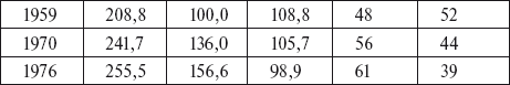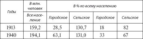 Для сравнения приведем данные о соотношении городского и сельского населения в СССР: