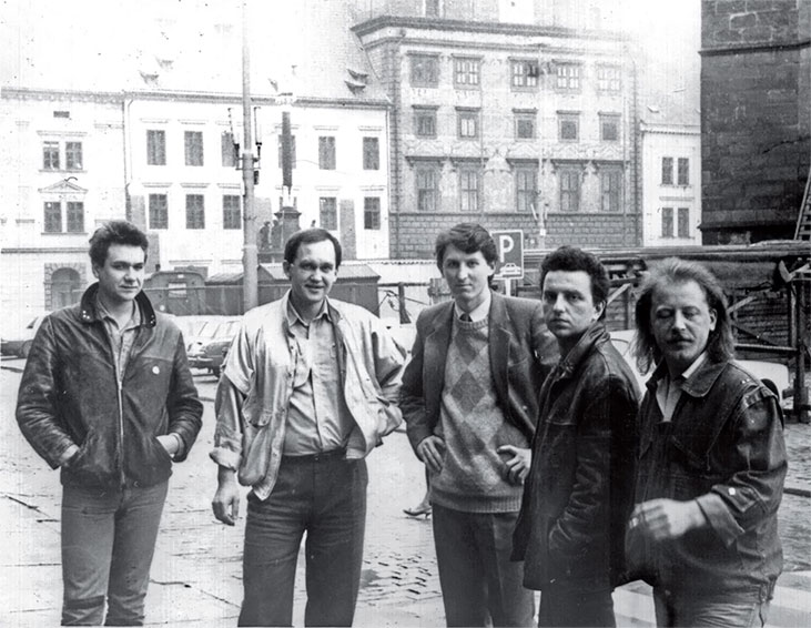 Николай Грахов среди рокеров. Грахов – второй слева, в белой куртке
