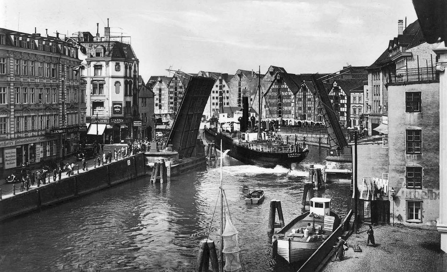 Рядом с Лавочным мостом была построена будка – как пишется в немецких бумагах, «для складирования возможного хлама». В 1339 году мост упоминается как названный в честь святого Георга, но в 1397 году он обретает новое имя: Когенбрюкке, то есть Мост Судов (купеческие корабли назывались тогда в Ганзе когами). В 1548 году это имя стало официальным, изменившись на одну букву: Кокенбрюкке.