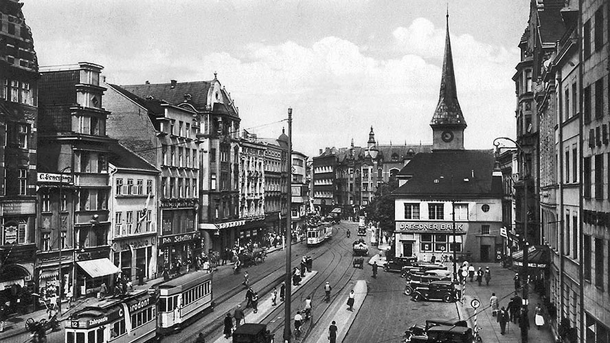 Штайндамм. Справа – Штайндаммская кирха и «Дрезднер-банк»