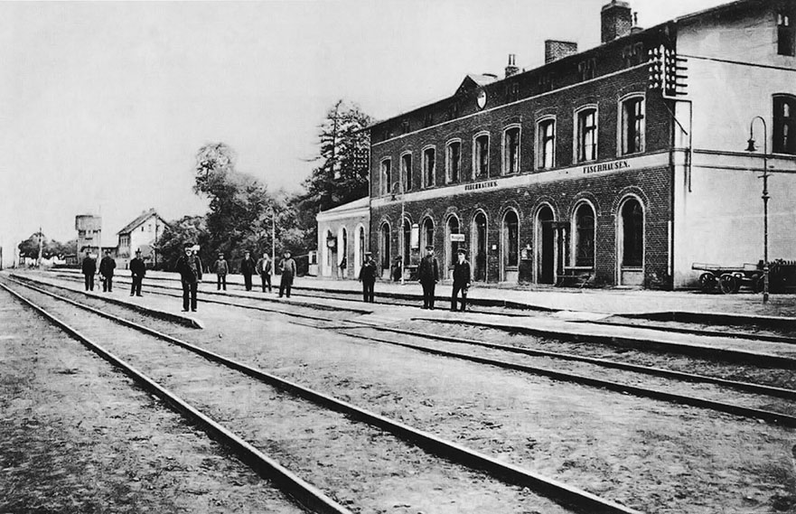 Вокзал Фишхаузена располагался на южном участке железной дороги Кёнигсберг – Пиллау, открытой в 1865 году, начало XX века