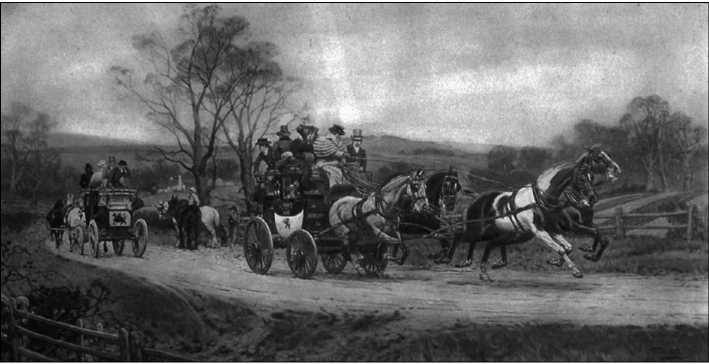 В России первое дилижансовое общество появилось в 1820 году. Средняя скорость почтового дилижанса – всего лишь десять верст в час, но зато ехал он и днем, и ночью. Путь от Петербурга до Москвы занимал обычно четверо суток. На места в дилижансах нужно было записываться заблаговременно в особых конторах. Зимой в экипаже помещалось четверо пассажиров, летом их число возрастало.