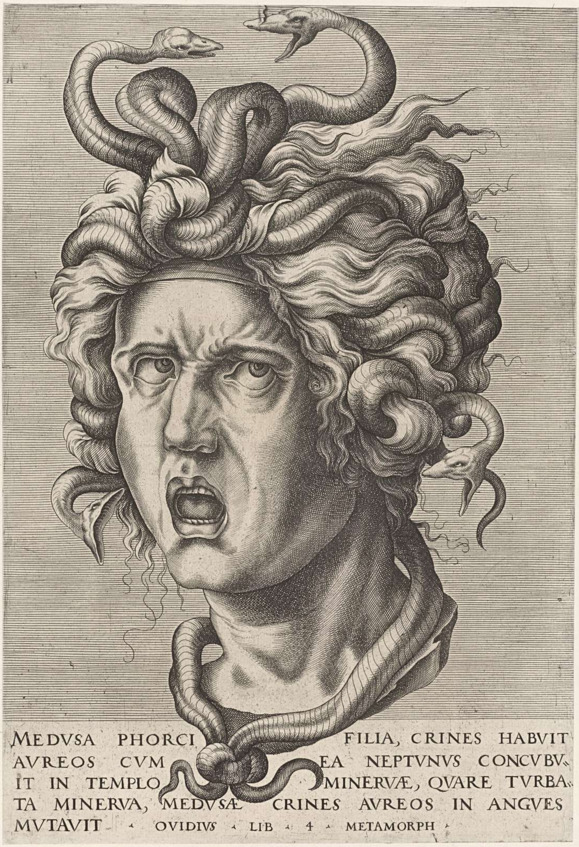 К этой грустной истории про неудачливую девушку необходимо добавить, что она была беременна от Посейдона. Когда Персей обезглавил Горгону, из нее появился крылатый конь Пегас, а также великан Хрисаор, родившийся с золотым мечом в руках. Персей собрал кровь мертвой Горгоны – из левой части тела, чтобы оживлять, и из правой, чтобы мгновенно умертвить. Волшебную кровь он подарил богу врачевания Асклепию. Из этой крови появилась змея, которую мы видим на посохе бога и которая сейчас является символом фармацевтики.