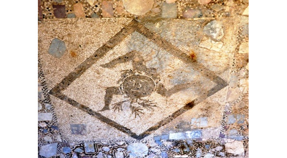 Изображение Тринакрии на кирпиче римского периода в Античном театре Таормины