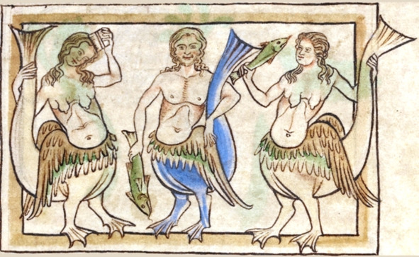 На самых древних вазах сирены изображены в виде птиц с головами прекрасных девушек. В виде русалок сирен стали рисовать уже после норманнского завоевания. А до этого, из-за ошибки переводчика, им довелось даже побывать полузмеями. В Средние века мифы о сиренах толковали по-своему, объясняя, что изначально сирены – это блудницы, завлекающие и губящие моряков28.
