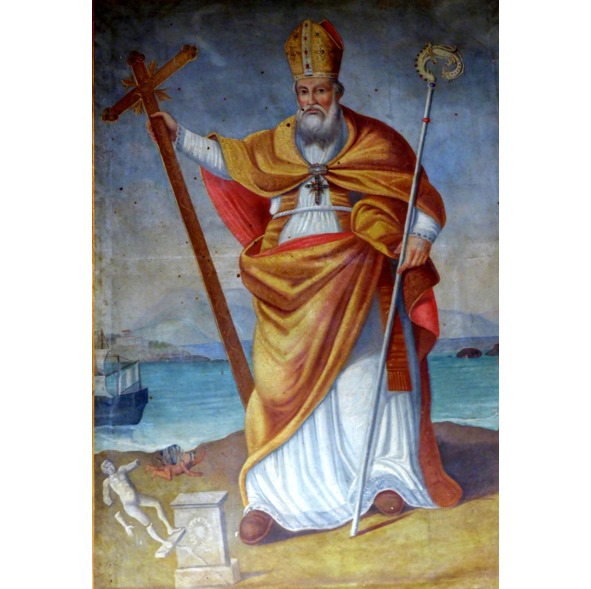 С появлением христианства греческую статую Аполлона в Наксосе сменила статуя святого Панкратия. Святой Панкратий прибыл на остров в 40 году н. э. по велению святого Петра бороться с язычниками и изгонять демонов. На основании статуи святого возле церкви (chiesa di San Pancrazio) * изображен языческий бог Аполлон в виде улетающего дьявола, которого победил Святой Панкратий48. Картина с этим сюжетом есть в самой церкви, а в таорминской церкви святого, слева от алтаря, есть фреска на эту же тему.