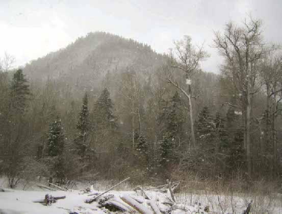 Место для бивака я определил возле двух крупных сухих деревьев. Никакого убежища от ветра поблизости не было, но у меня имелся один план. Отправив компаньона валить деревья, сам я вооружился ножовкой, которую всегда имею в «бардачке» снегохода. Судя по ветвям на стволах деревьев, высота снега здесь была не меньше полутора метров.