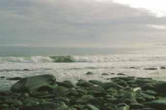 Выглядит этот необорудованный берег обычно следующим образом: о круглые крупные валуны, россыпью наваленные на пляже, с размаху разбиваются длинные серые волны. Если вы подходите к берегу на шлюпке, моторной лодке или другом таком же утлом плавсредстве, то с воды вам кажется вначале, что волны эти высотой не более чем по колено, причаливание будет заключаться в том, что лодка лениво ткнётся на гребне волны в каменистый берег, и вы, выскочив через нос и не замочив ног, мирно отправитесь по своим делам.