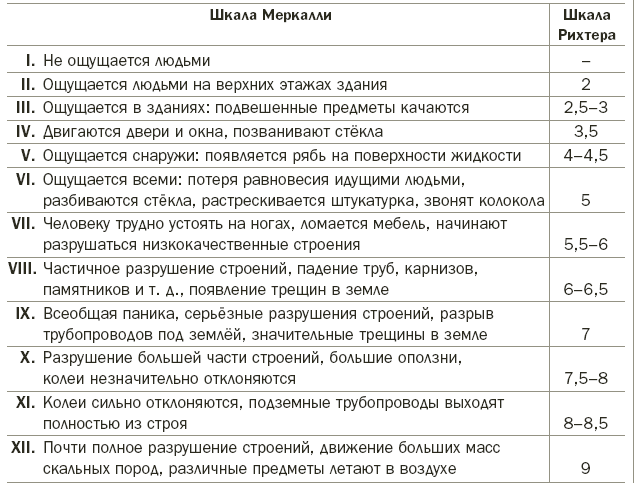 Оценка силы землетрясения по шкалам Меркалли и Рихтера