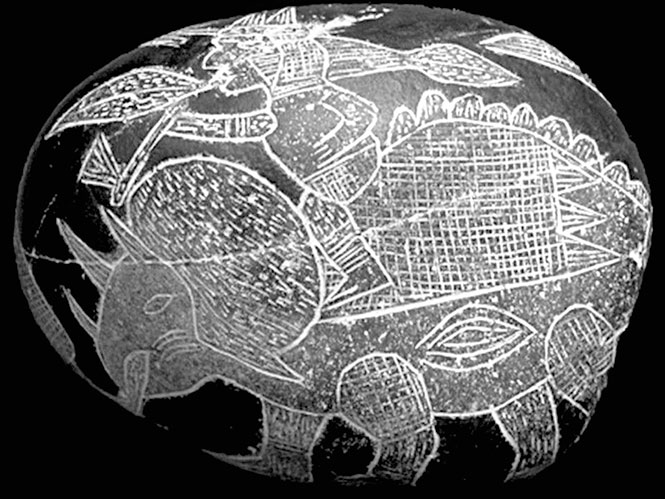 Рисунки, нанесенные на поверхность камней, содержат в основном бытовые сцены.