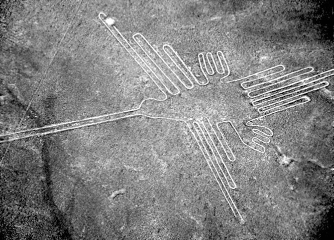 Геоглиф колибри с плато Наска. На одном из камней Ики имеется этот рисунок вместе с другими рисунками с плато Наска: пауком, обезьяной и др.