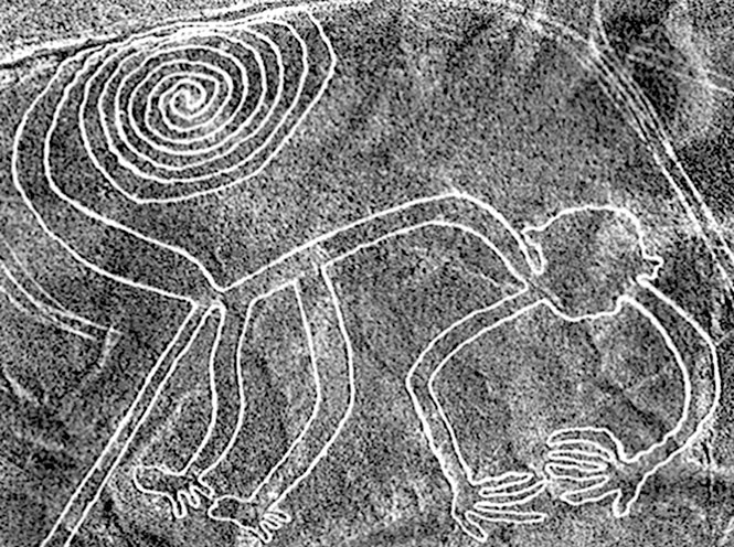 Обезьяна с плато Наска. Точно такое же изображение имеется на камнях Ики