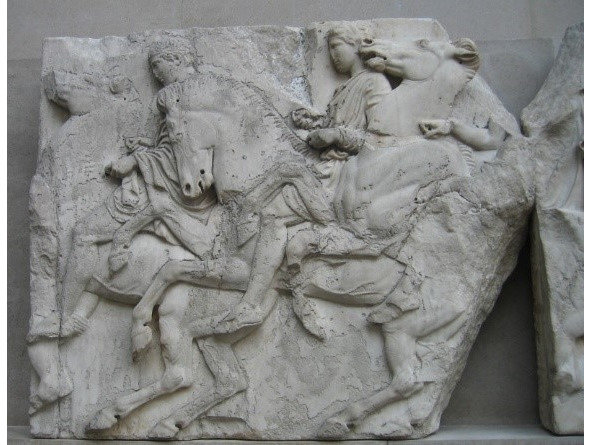 Это часть скульптурного декора Парфенона. Интересно, а что турки там делали? А они там пороховой склад устроили. В Парфеноне. А их султан просто обожал играть в шахматы и ему нужен был хороший противник. Он просто умирал, этот «Ботвинник». Ну, англичанин и сел с ним играть, и выиграл этот фриз. Снял его с фронтонов Парфенона и увез в Лондон. А сейчас греки, вернее потомки тех турков, говорят: