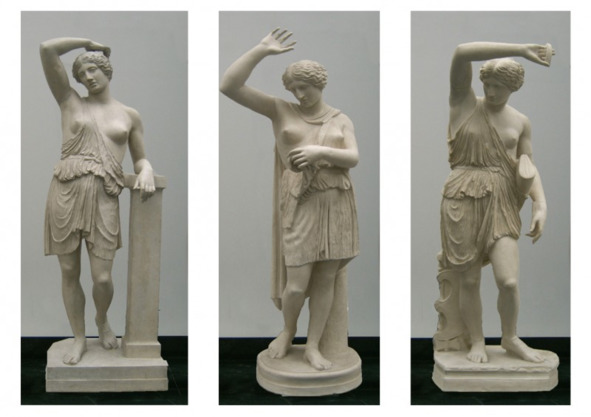 Гипсовые реплики. Раненая амазонка: Фидий (левая), Поликлет (центральная), Кресил (правая)