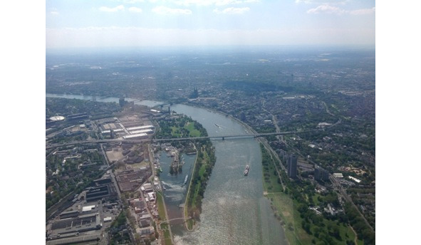 Посмотрите, какие великолепные виды на центр Кёльна открываются из иллюминатора.