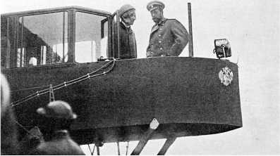 Император Николай II с Игорем Сикорским на балконе «Гранда», совершившего посадку в Царском селе летом 1913 года
