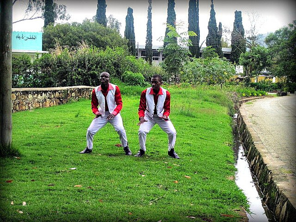 Так и ходила бы я изнывая от скуки в ожидании встречи с друзьями, если бы вдруг недалеко от мечети не остановилась грузовая машина. Два разнаряженных в красное парня, оператор с камерой на треноге и режиссёр стали шумно выгружаться на красивую поляну в обрамлении стройных кипарисов. Стало ясно, что будет съёмка. Действительно, громоздкие колонки вдруг низвергли непривычные уху напевы, а парни в красном стали танцевать прямо на поляне. Снимали музыкальный клип под африканскую музыку. Парни танцевали на фоне кипарисов, красиво контрастируя со свежей зеленью своими красными рубашками.