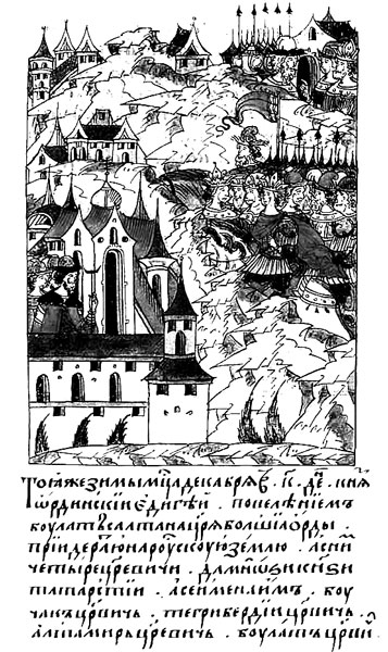 Нашествие Едигея. Миниатюра из Лицевого летописного свода
