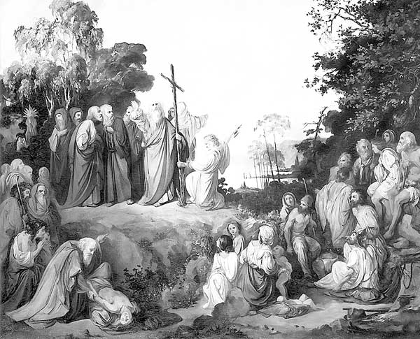 Апостол Андрей Первозванный водружает крест на горах Киевских. Худ. Н. П. Ломтев
