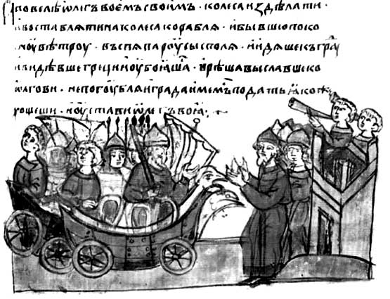 Взятие Олегом Вещим Константинополя Миниатюра из Радзивилловской летописи, XIII в.