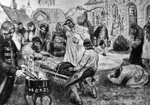 «Салтычиха» (иллюстрация работы В. Н. Курдюмова к энциклопедическому изданию «Великая реформа»)