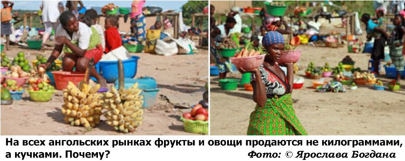 Глядя на них, я размышлял: почему здесь все меряется не килограммами, а кучками? От того, что в Анголе бо-о-о-о-льшой дефицит с весами? Или…?