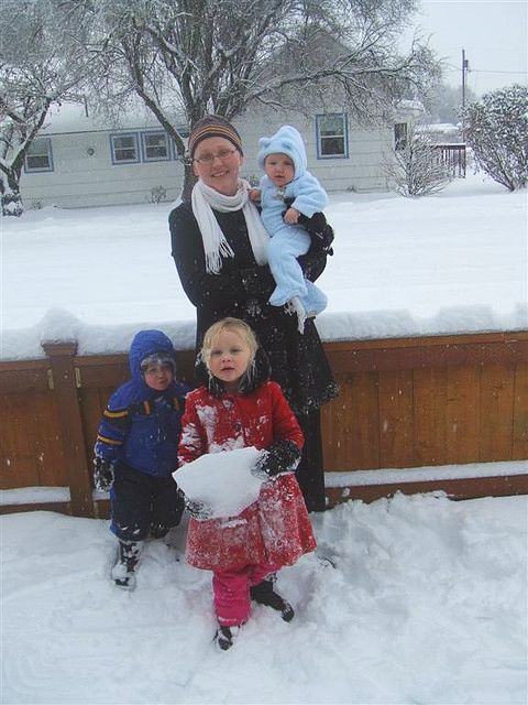 Наслаждение редким в Орегоне снегопадом, – так подписано это фото. Агапия Мартюшева с детьми.