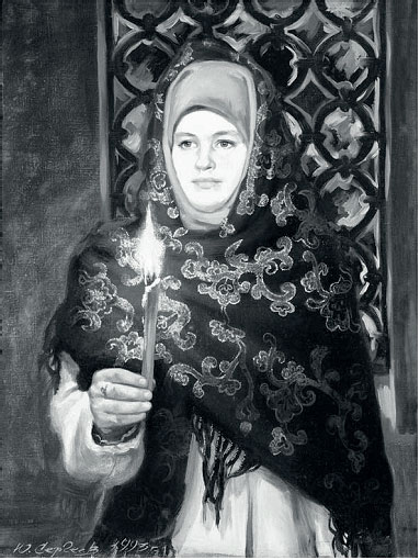 А здесь, на картине Юрия Сергеева, вера духовная – она в несогласии, как у суриковской «Боярыни Морозовой», только не конфликтном, не гневном, не отчаянном, а доброжелательном и спокойном.