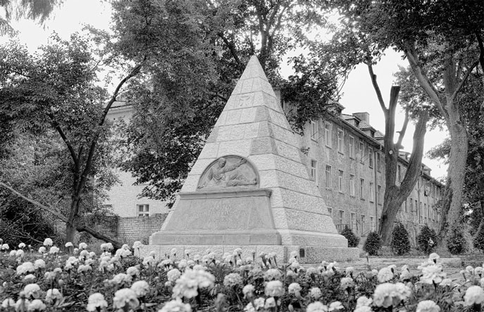 Когда город отошел Советскому Союзу, новая власть велела взорвать пирамиду, но этот приказ так и не выполнили. Был только обезглавлен немецкий солдат, фигурка-барельеф.
