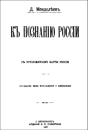 Титульный лист книги Д. И. Менделеева «К познанию России». 1906 г.