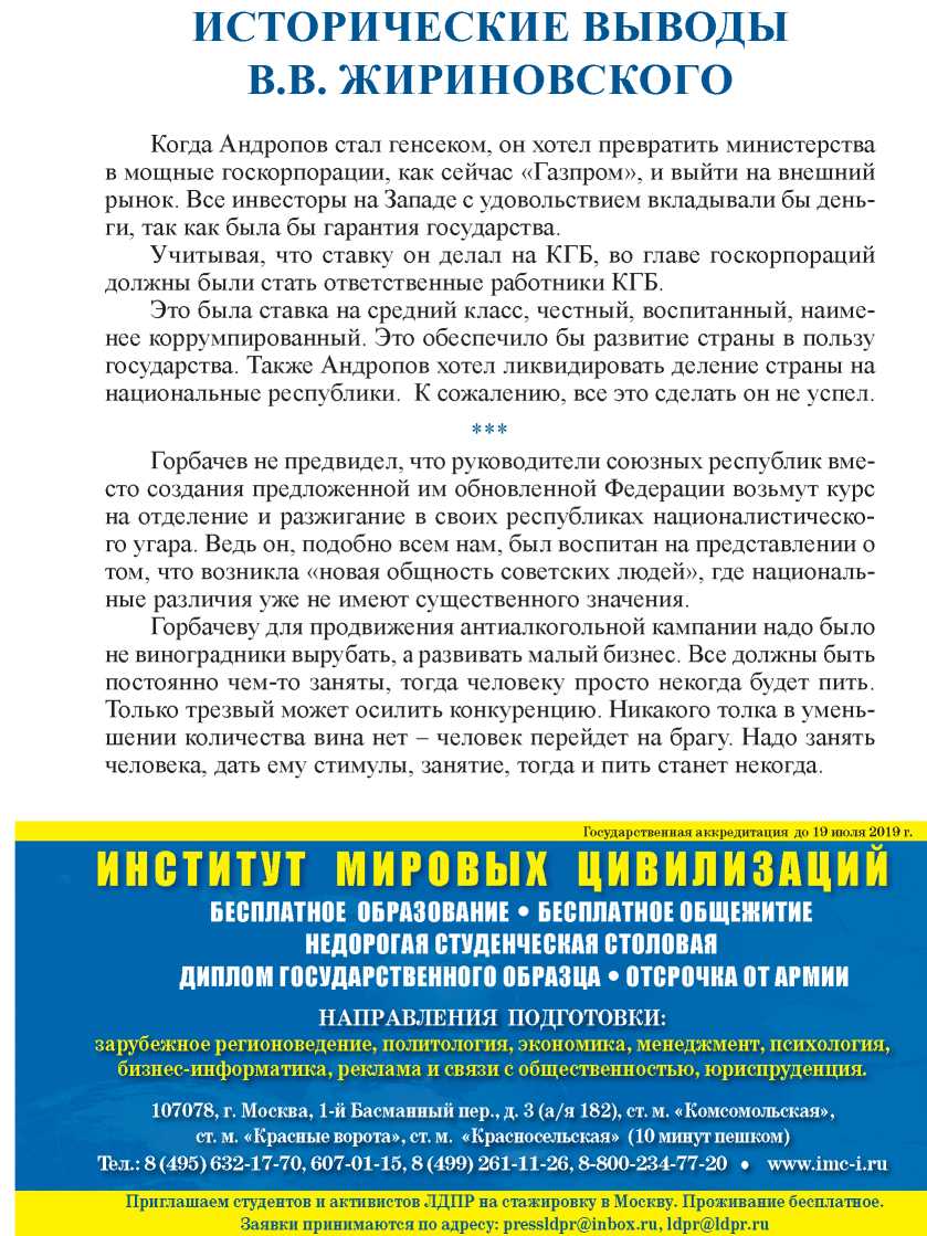 ЧАСТЬ III. ИСТОРИЧЕСКИЕ ВЫВОДЫ ВЛАДИМИРА ЖИРИНОВСКОГО