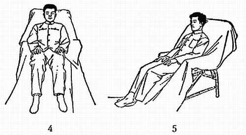 б) Положение полулежа в кресле. К этой позе предъявляются те же требования, что и к предыдущей (рис. 4, 5).