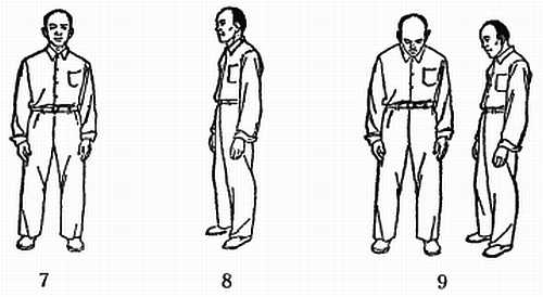 Встаньте прямо, левую ногу отведите влево на ширину плеч, при этом следите, чтобы носки ног не были развернуты ни вовне, ни вовнутрь. Голову держите прямо, подбородок подберите, втяните грудь, плечи расслабьте, локти опустите. Руки держите вдоль туловища, полностью расслабьте все суставы и мышцы тела. Смотрите прямо перед собой (рис. 7-11).