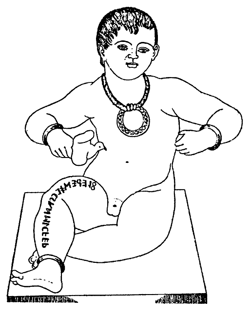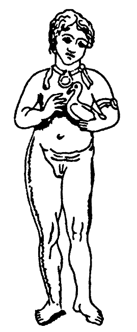 Мальчик с гусем (рис. 19). Ф. Воланский пишет: «Фигура… изображает нагого гетского мальчика с гусем в руках. Эта фигура найдена в 1746 году в тосканских владениях… В течение 100 лет… очень много говорили об этой статуйке… но ни один не сообщил нам достаточного объяснения».