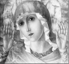 Картина К. С. Петрова-Водкина «Богоматерь Умиление злых сердец» (1914-1915 гг.) написана маслом на холсте. Так она выглядела до реставрации (слева).
