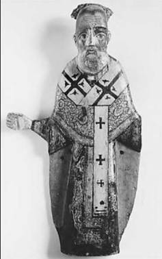 Деревянная скульптура «Никола Можайский» (XVII в.) расписана темперой по грунту. Реставратором Л. Г. Лапиной роспись раскрыта из-под поновлений, укреплены грунт и красочный слой, удалены профилактические заклейки. Раскрытие из-под записей велось под микроскопом, микроскальпелем, без применения растворителей.