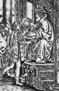 Рис. 3.29. Пилат умывает руки. Фрагмент гравюры «Суд Пилата». Взято из [1267], лист 52, оборот.