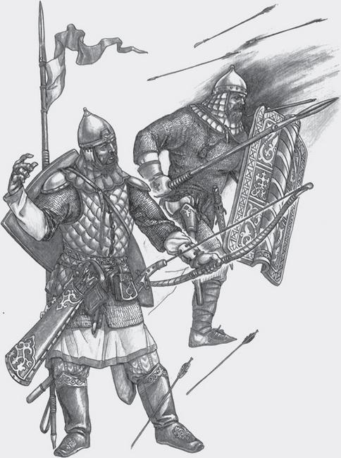 Пешие русские воины (середина ХIV в.). Такое вооружение имели как воины московского князя, так и ратники, служившие литовским князьям