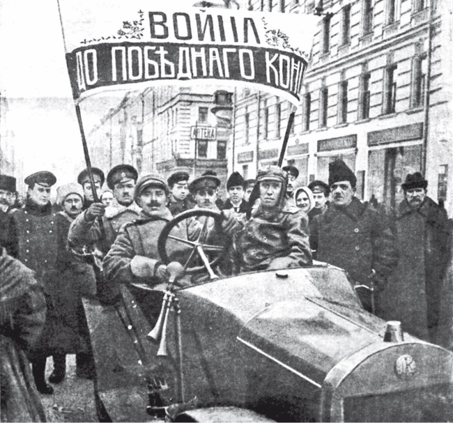 Русские солдаты в Петрограде. Присутствие тысяч вооруженных людей в крупных городах добавило напряженности во внутренней жизни России.