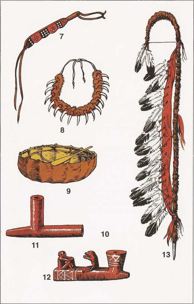 2. Церемониальная трещотка и жезл из рога бизона