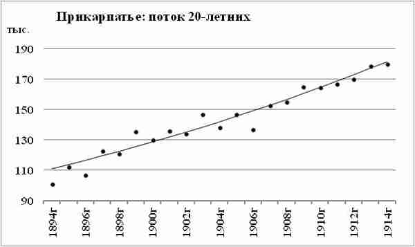Поток 20-летних Прикарпатья имеет большую неравномерность. Ежегодный прирост потока — около 2,5%.