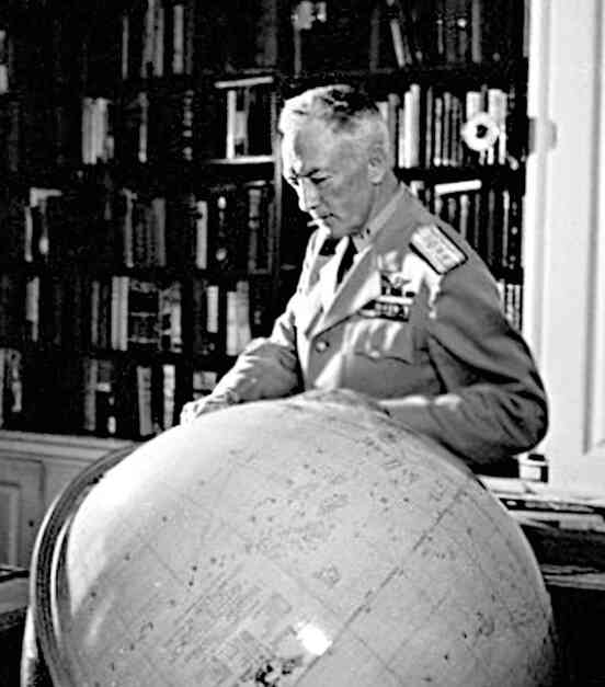 Весьма показательное фото: адмирал Бэрд у глобуса показывает на полюс