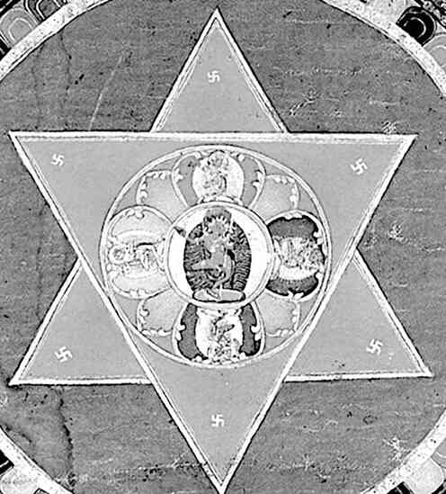 Тибет, древняя икона с так называемой масонской звездой, Звездой Давида и со свастикой