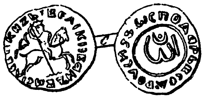 А.Д. Чертков обращает внимание на то, что на русских монетах нередко можно видеть известную «татарскую печать». Он пишет, что этот знак, «самый обыкновенный на монетах ханов Золотой Орды, встречается весьма часто на русских деньгах XIV века, особенно Вел. Кн. Василия Дмитриевича и его братьев». Могут сказать: в этом нет ничего удивительного, ведь завоеватели-татары требовали ставить свой знак — печать на деньгах своих подданных. Возможно.