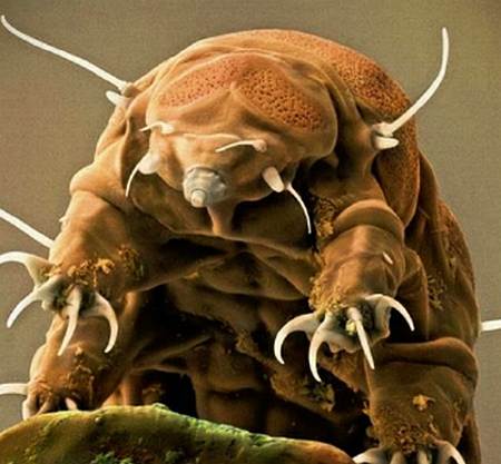Тихоходка микроскопическое животное обитает в водной среде. Имея размеры всего в полтора миллиметра тихоходка очень живуча. Кроме того, она достаточно распространена, ведь её можно встретить в любых климатических поясах. Её называют водным медведем, хотя медведь такой жизнеустойчивостью не отличается. Она отлично переносит низкие температуры и выдерживает до — 273 и + 151 градуса по Цельсию. Радиация ей тоже нипочем: она выдерживает максимальные показатели для других организмов, увеличенные в 1000 раз. В 2007 году учеными был осуществлен эксперимент. В полном вакууме тихоходка была помещена на низкую орбиту, когда они вернулись на Землю, удивительно, но факт — все были живы.