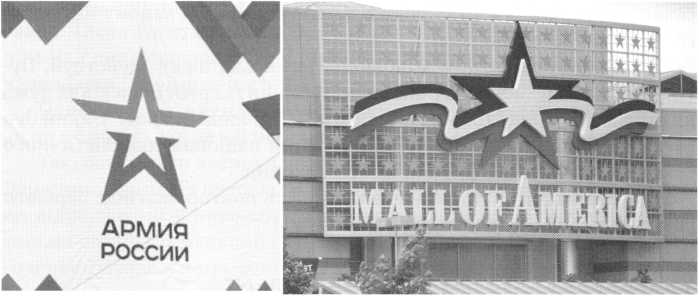Однак із новою емблемою Армії Росії знову таки трапилася халепа. Мало того, що Росія не змогла придумати нічого нового, крім як розфарбувати стару радянську зірку в кольори прапора Росії, який, як уже зазначалося, нагадує голландський прапор, так ще новий знак російської армії виявився схожим на емблему американського супермаркету Mall of America зі штату Міннесота, відомого вже понад 30 років.