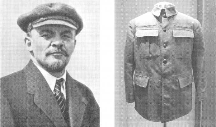 В. Лєнін у кепці (не раніше 1920 року) та його френч (Державний історичний музей, Москва)