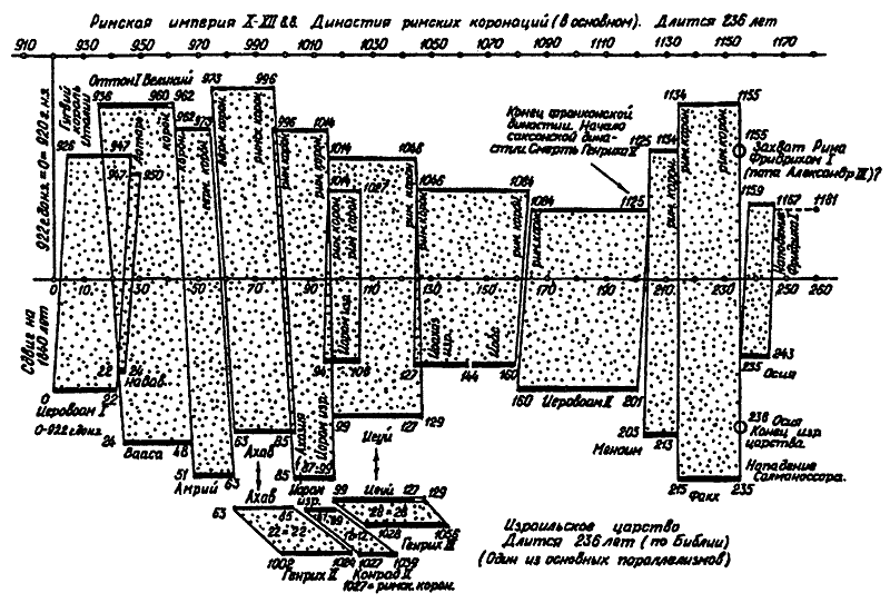 Рис. 15. Статистическое наложение Римско-Германской империи X–XIII веков н. э. (по ее римским коронациям) на библейское Израильское царство.