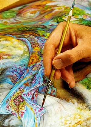 На Западе и в мусульманском мире его работы широко известны. Хочу и вас познакомить с современным иранским художником Махмудом Фаршчияном. Сразу же хочу дать небольшое пояснение. Существует мнение, что ислам запрещает изображать людей, но у шиитов такого запрета нет. Иран, шиитская страна, наследник Персии, известной искусством своей миниатюры. Я не искусствовед и не историк, но мне кажется, что в искусстве Палеха тоже есть что-то от персидской миниатюры, ведь путь из России в Персию был протоптан издревле. Но пора рассказать о художнике.