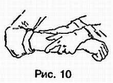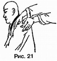 Прием заключается в расшатывающем воздействии на то или иное сочленение одной или двумя руками (рис. 21). При «расшатывании» следует соизмерять усилие с состоянием больного и местом воздействия. Прием необходимо выполнять осторожно и не спеша, избегая грубой силы.